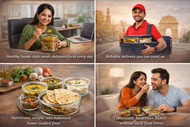 Delhi is home to a wide variety of lifestyles—corporate professionals, students, freelancers, families, and senior citizens. Tiffin services adapt easily to all of them.