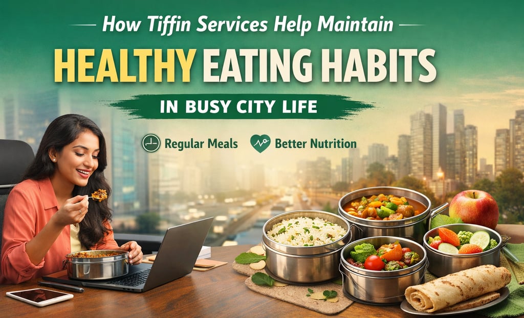 Discover how tiffin services support healthy eating habits in busy city life by offering regular, home-style meals that save time, reduce stress, and improve daily nutrition.
