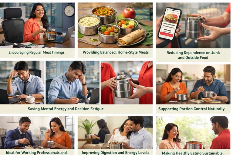 Tiffin services are designed for everyday needs, not occasional indulgence. They provide freshly prepared, home-style meals delivered at regular times, removing the daily stress of deciding what to eat.